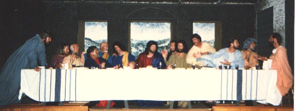 This is the set and cast of the "Last Supper" as presented by the United Methodist Church of Lindsay Oklahoma. This drama is based on the famous painting by Leonardo Da Vince titled "The Last Supper." The set and the wardrobe have been carefully reproduced from Leonardo's original work of art.