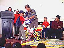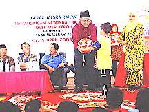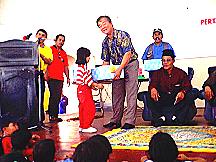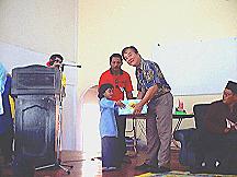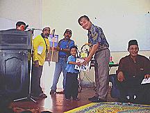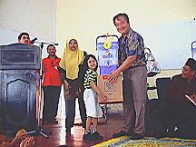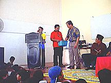 | Wakil Ketua UMNO Caw. (Hj Ariffin) sedang menyampaikan hadiah. | Datuk Seah Kwi Tong sedang menyampaikan