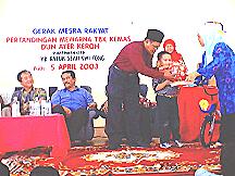 Wakil Ketua UMNO Caw. (Hj Ariffin) sedang menyampaikan hadiah. | Wakil Ketua UMNO Caw. (Hj Ariffin) sedang menyampaikan hadiah. |