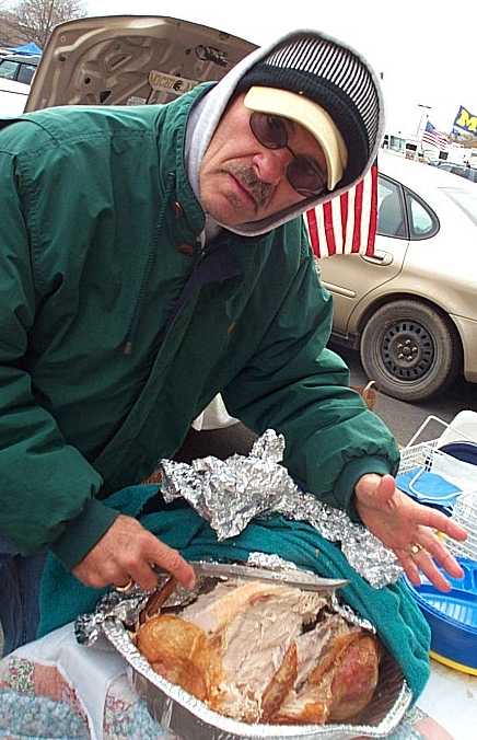 The day started out cool... it got colder .... then it snowed. A great finish to another great season of U of M Football and Tailgating Parties with Friends. (A reminder: These pictures are thumbnails. Click on them to see a larger view. And we have added text to all the pictures. Let you mouse set on a picture for a second to see it.)