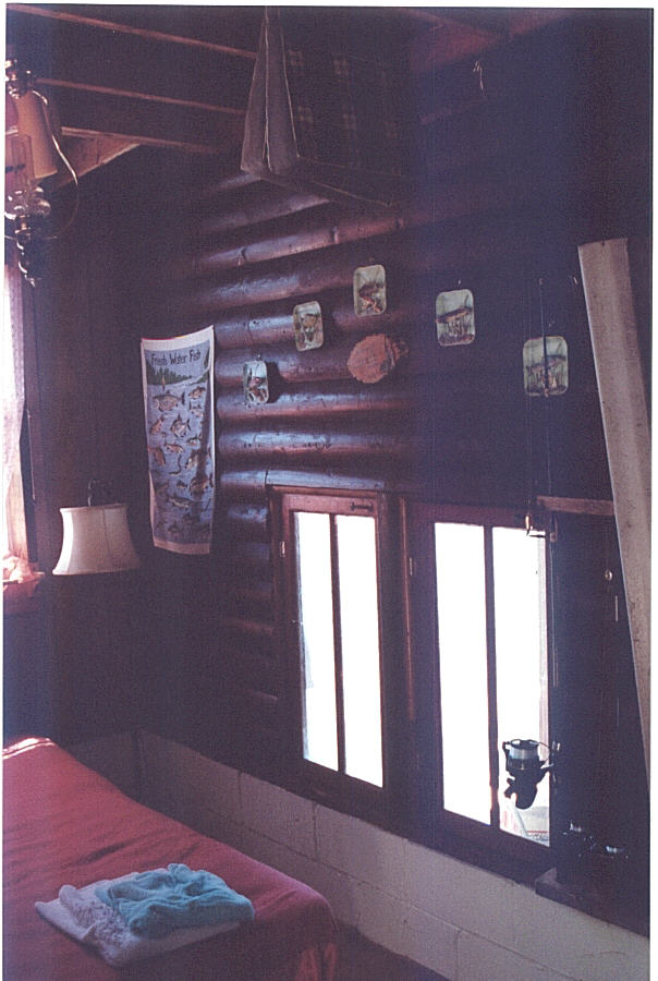 The interior is finished in redwood log siding. There's a frig, sink and a berth for one!
