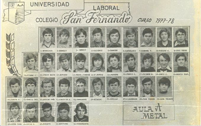 Orla curso 77-78 Aula A-Metal -- Colegio San Fernando. Foto cedida