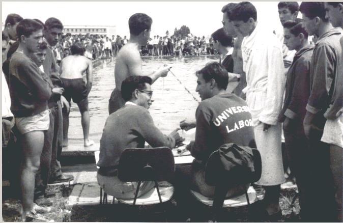 Integrantes del equipo de Natación, entre ellos Camarero, Agustín