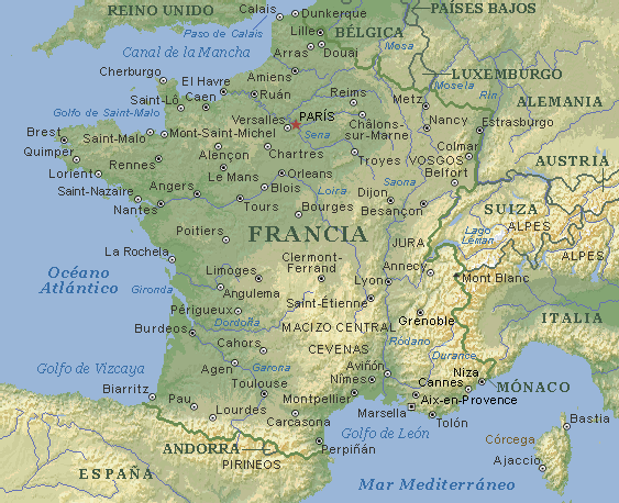 Superficie: 543.965 km² Sistema político: Democracia parlamentaria presidencial Economía: Capitalista mixta Población: 58.800.000 Capital: París (10.150.000) Otras ciudades: Lyon (1.262.223); Marsella (1.230.936); Toulouse (608.430); Nantes (492.255); Niza (475.507) |