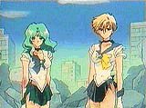 Two new Sailor Senshi appear in the battle with Death Buster, Sailor Uranus and Sailor Neptune. In reality, Uranus is known as Ten'ou Haruka, a tomboy into racing cars and track and Neptune is Kaiou Michiru, who has a talent in art as well as music. They are older then the inner senshi by at least a year and gain their respect as they meet in their regular identities. Neither parties know about each other until much later. In action, they are ruthless in their methods to find the talismans that well awaken the Messiah. The talismans are located only in people with pure hearts.