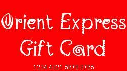 You know those people who are impossible to shop for? Well, they love to eat here. The Oriental Express Gift Card is a great way to tell that special someone that you really care about them...and their appetite. The perfect gift for birthdays, weddings, anniversaries, graduation, Mother's and Father's Day, the Holidays, or any time of year. Available at The Orient Express Eatery, by calling (813)-555-1212