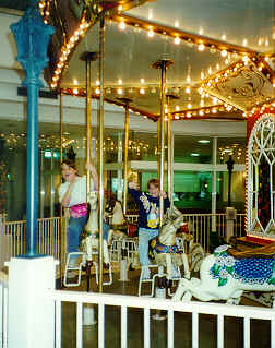 Ashley, Kayla and her mom rode the Kiddie Train. It went along the inside and outside wall of the mall- they said it was pretty slow, but had a nice view. (10/31/97)