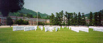 Home of the JMSDF's First Service School & Officer Candidate School. The Imperial Naval Academy was relocated to Etajima from Tokyo in 1888. It was closed after WWII, but the JMSDF schools moved onto Etajima in 1956. Actually taken for me by someone else, from the window of the bus we were toured around on (I was on the wrong side of the bus!)