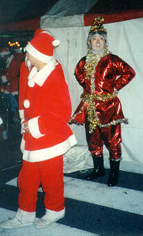 There were many "Santas" wandering around the streets, mostly in groups. There were even girl Santas, distinguishable mostly because they didn't wear beards. This was probably the most unusual Santa we saw! 12/23/97