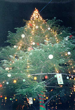 The trees along the street in the shopping district of Tokuyama, about an hour-and-a-half from Iwakuni, were decorated for Christmas, with lights and ornaments. There were vendors all along the street, which was closed to vehicular traffic, selling food and souvenirs. Paul was even interviewed for Japanese TV, while waiting in line for some yakisoba! 12/23/97