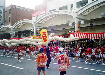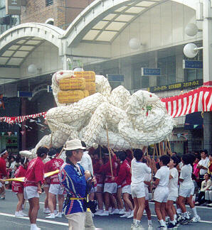 | The White Snake parade is held in downtown Iwakuni. In 1998 we attended on Sunday, Oct. 18th! | The white snakes of Iwakuni are considered sacred. |