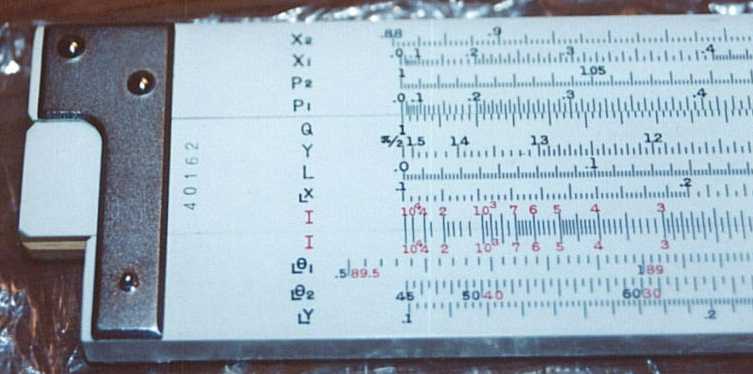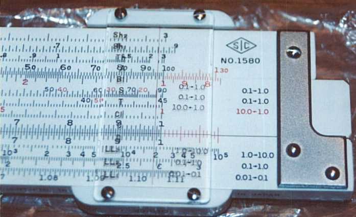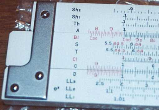 Now HERE'S a real powerhouse, and an ultra uncommon rule in any variant. This is a photograph of Mr. Kay's MIB SIC 1580, a re-badged Ricoh 158, which was at the very top end of their rule catalog. On the front side, a very "normal" hyperbolic rule, with hyperbolic sine and tangent scales, but also an odd BI scale (not normal on any brand, except maybe Faber-Castell...) and three log-log scales. But the reverse isn't usual at all. You know what? I'd love to tell you that I know how to use all of the scales on this side of the rule. Love to. But I can't.. Because I don't. Nonetheless, these are also exceedingly rare, in any variant. I couldn't even tell you which variant is the most common in the U.S.. |