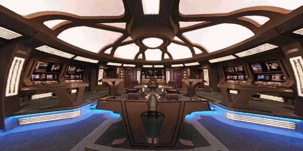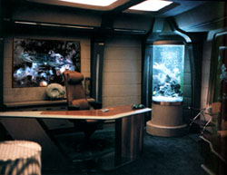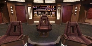 Located through a door on the right hand side of the bridge is the captains ready room.