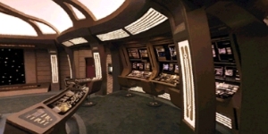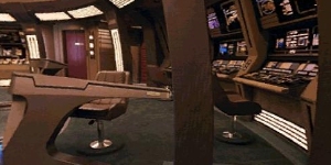 Other Workstations - On the left hand side of the bridge are littered the other three of six auxiliary consoles. The closest being the Missions Operations II console, which carries out the same function as Mission Operations I. The second console is Computer Access, for diagnostics and such on the main computer system. The final console is a mission configurable console, with the ability to act as a terminal for any department. |
