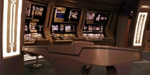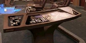 Operations Station - This station is located to the front of the bridge, and to the left of the Helm station. From here, many of the ships systems are monitored and controlled by the Chief Operations Officer, or the Assistant Chief Operations officer. Some engineering systems can also be routed through this station. |