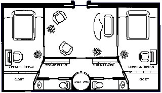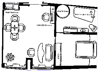 Petty officers suites are the same size as those the cadets and petty officers have, except that four bunk beds are in each bedroom, along with a small writing desk and wardrobe for each crewman. The common area houses the bath and living rooms, plus a small computer/communications console. There are no replicators in these rooms, as younger enlisted crew are expected to utilize the galley, mess hall, and enlisted crew lounge). Eight suites arc along the forward section of the deck. They are numbered sequentially from port to starboard.