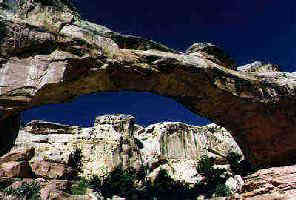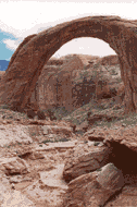 One of the seven natural wonders of the world, Rainbow Bridge National Monument is a natural bridge rising from the stream bed below. It is large enough to span the Statue of Liberty or the US Capitol. It can be reached by boat tours via Lake Powell or by trail from Navajo Mountain Trading Post.