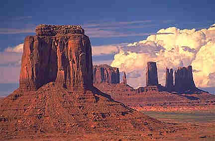 Monument Valley is an area of free standing sandstone rock forms that rise majestically from the desert floor. Up to 1,000 feet tall, they create a truly magical desert landscape. Monument Valley is located along the Utah/Arizona border.
