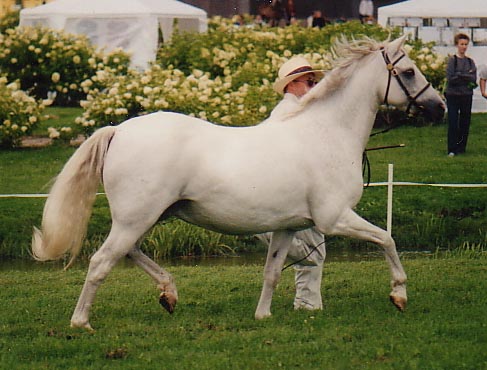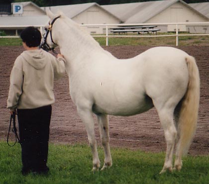 | C: Laura Metsänen (poni kuvissa Polaris Jonquil) TUOMARIT: Lisää kuvia alhalla :) ** KILPAILUT ** rotu: welsh poni (sec. B) väri: kimo syntynyt: 13.8.2001 (VHKR) säkä: 131 cm kasvattaja: Laura M. / Apple Tree omistaja: Jenni L. / Vadelmakankaan Kartano koulutustaso: re 100 cm, ko He A I. Sunlight E. Arecas Ann Lee Lilli on erittäin hyvärakenteinen ja näyttävä liikkeinen welsh tamma. Se on hyvin saman tyyppinen kuin emänsä Arecas Ann Lee, myös kaunis valkoinen väri periytyy emän puolelta. Luonteeltaan Lilli on lämmin ja ystävällinen. Se ei pahastu pienistä asiista ja onkin kaikenkaikkiiaan oikein malli esimerkki hienosta siitostammasta. Lilli on myös lahjakas ratsuponi, joka rakastaa ihmisen miellyttämistä. Tamma on aina kuuliaisesti avuilla, eikä esteilläkään säntäile omiaan, vaan kuuntelee kuskia moitteettomasti. Kertakaikkiaan upea pikku tamma! Varsat: astutettu 24.2.2002 oriilla AT's Andromeda |