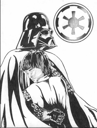 This illustration was done by The Sith Witch for inclusion in the Star Wars fanzine "I Don't Care What You Smell" alongside my story. Please tell her what you think of the drawing and don't post this elsewhere without her permission.