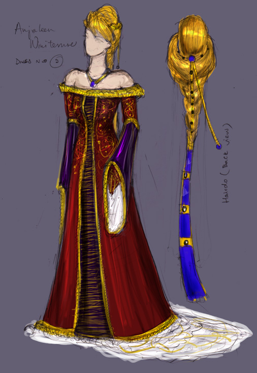 Dynasty Concept Art: Anjaleen's maroon & purple dress