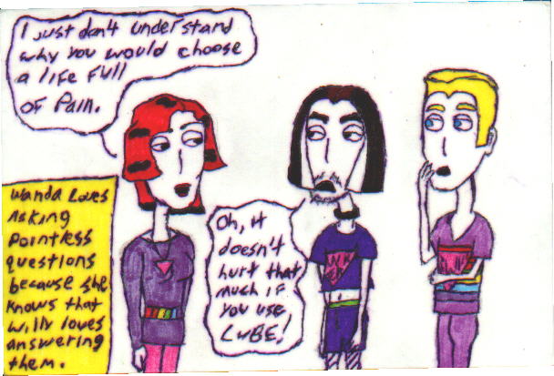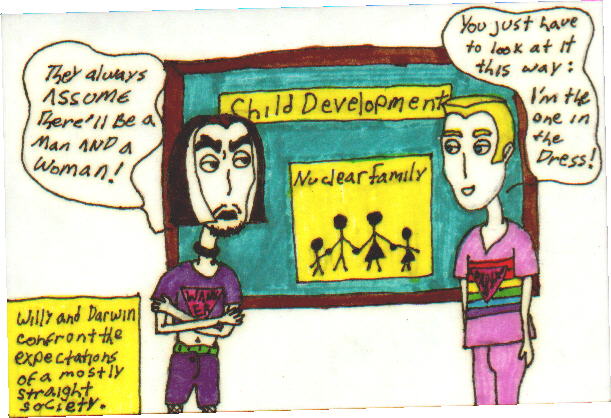 Finally, one day, Darwin confesses to Willy that he is gay. Will draws into himself for a moment to think and then smiles back and says, "Hey! You know what? So am I!" From that point on, Willy and Darwin no longer consider each other friends, they consider each other lovers. And together, they decide to show the world how happy they are... After they get through finding all the answers to their troubles...