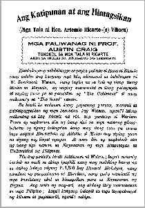 Saka sa isang pag-uusap namin ni Watson ay nasabi ko sa kanyang mayroon nang ilang sipi ng kasulatan niyang yaon; kaya't ang kanyang tangkang ipagbili upang maiwasan ang pagkabunyag, ay di na ipinagpatuloy. Pagkalipas ng ilang panahon ay inihulog niya sa ingles ang akdang ito, at saka sinimulang inilathala sa isang pahayagan sa Kabite yata o sa Korehidor, (Kavite Gazette) na iilang kabanata naman nalabas, at hindi na hihigit pa marahil sa napalathala sa isang pahayagan pang-linggo rito sa Maynila, sa taya ko (Manila Sunday Tribune).