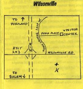 Directions: From I-5 north or south: Take Wilsonville exit 283. Turn east on Wilsonville Rd. Turn left on Town Center Loop West. Turn right on Park Place. Visitor center is straight ahead.
