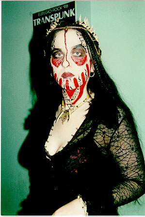 A few years later, Misgard had gained a notorius reputation in Norway. Their shows were "one of a kind, theatrical in the macarbe sense" said one critic. Viranka, Nigel, and the rest of the band painted their faces up in black and white designs. Viranka favored black and red. On stage she would wear an old style wedding dress. Throughout the duration of the show, the dress would get covered in fake blood; so would the first few rows of the audience. Their music was dark, but strangely melodic. The lyrics focused on vampires, and Norse gods of the old. Viranka became especially feverant when onstage. She was so passionate about her music that she would literally become the people she sung about. This passion for madness is what attracted the attention of Shagrath. He had heard of Misgard from people talking about them in the bar he frequented. What caught his attention were the descriptions of the female guitarist/vocalist of the band. So he went to show after show, listening to her, studying her. Analyzing her every action in his crazed mind. Yes, yes she was the one. She was perfect, divine, it would have to be her.