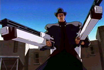 | Character Summary: This is as evil as an priest can be I would say. His first appearance would be in episode 23 but he has a much greater role. One of the most unexpected turns in the series is related to this guy and another priest in the series (isn't this a spoiler or what!?). Anyway there is an apple that goes along with Chapel all the damn time, i guess he likes those a lot and believe it or not this apple has an important role in the series, as it represents the leap from the student to a master. Except that this is another one of the gung Ho's that fight with some honor and as it mostly goes around this series he has his moment of redemption which ultimately leads to his death, all being statge by our favorite mind bender Legato Bluesummers. WEAPONS: "punisher" crucifix, that actualy splits in two might ass machine guns. Coffins as a secondary, which he uses to do an really cool surprise attack, watch the duel between him and Wolfwood for this one! The intersting though is about his crucifix, this thing is not essentialy what Wolfwoods is. It is solely a weapon with any storage capacity it appears to be! (check trigun weapons for better explanations!) |