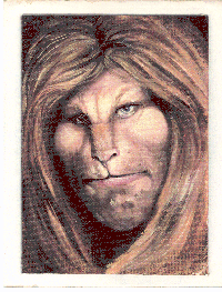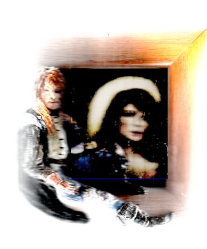 Sculpted Vincent glued to wood picture frame with Catherine Colored Pencil picture. Scanned image. 10 x 10 1989. |
