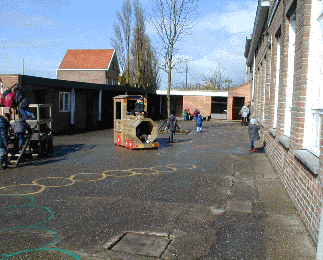 Op onze speelplaats kan je heel leuk spelen, want we hebben veel om op te zitten! Dat vinden we leuk! Hieronder zie je onze speelplaats met alle speeltuigen.