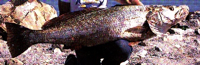 Mulloway will form schools at all sizes, but the larger ones will usually hunt alone. Small Mulloway are often caught on prawns, worms, yabbies, fish strips; larger Mulloway are best caught on those fish mention in "Feeding". Mulloway will often run with the bait for a distance, so you should strike while it is still running. Another good time for trying to catch Mulloway is during the day, when it is raining heavily and the water is discoloured. Sharp hooks size 4/0-9/0, 6.0-24.0 kilo fishing line. If you want to try a lure, try minnows, poppers, jigs, slices, metal slugs.
