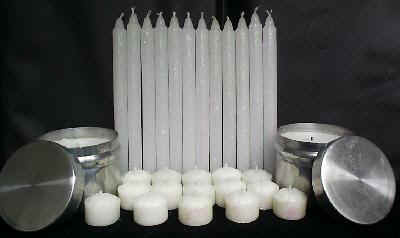 ser abertas no momento do uso) , 12 velas de altar, 16 velas votivas, 15 varetas