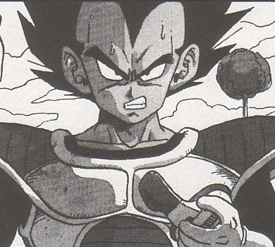 | Okay, welcome to...hey why am I in white? I'm supposed to be in pink! You're in the manga section, the only colors that exsist are black, white and gray. Is that so, Bulma? Oh well, I'll just deal with it. Anywho, I'm here to answer a few simple questions and give you a taste of the wonder called manga. So what is a "manga"? Manga is another word for Japanese comic books. Many anime shows, including DBZ were based off a popular manga story. Are the characters any different in the manga? From what I can tell, they're just the same as ever, but I'll let you be the judge. Here's the Volume 4 character bios for Bulma and Vegeta. Bulma- Goku's oldest friend, Bulma is a scientific genius. She met Goku while on a quest for the seven magical Dragon Balls, which when gathered together, can grant any wish. Vegeta- The prince of Planet Vegeta, homeworld of the Saiyans. He claims to be the greatest fighter in the universe. He originally came to Earth to find the Dragon Balls and wish for immortality, but now he has a special score to settle with Goku... What's this manga look like? For some of my favorite manga scans, head over to Mai's Manga Nook |
