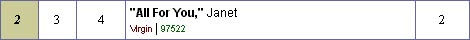 El día 27 salió a la venta el sencillo de All for you de Janet en los Estados Unidos y esta semana, la canción se posiciona en el lugar número 2! estando a tan solo un peldaño del primer lugar.![]()