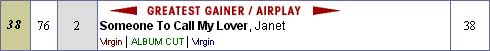 Someone to call my lover dió un salto desde el número 76 hasta el 38 en su segunda semana en la lista Hot 100 de Billboard y es, en esta semana, la que ganó mas tocadas al aire.