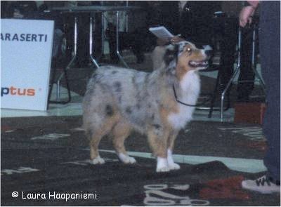 Työskennellessä Moona toimii hyvin. Agilityä ja paimennusta se rakastaa. Tokossa se välillä 'esittää' kuuroo koiraa, tai ainakin siltä tuntuu kun käskyjä sille antaa. Yleisesti tämän nartun kanssa on ilo työskennellä. Näyttelyissä Moona tykkää kanssa käydä, ja kehässä se kulkee kuin omistaisi koko paikan ;) Moona jaksaa seisoa näyttelyasennossa kauan, kun siltä alkaa kärsivällisyys loppua seisomisessa se katsoo minua anelevasti.