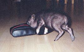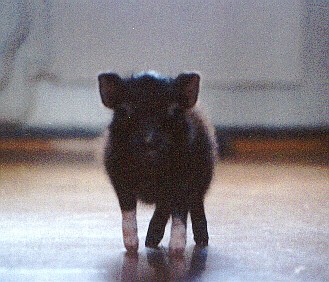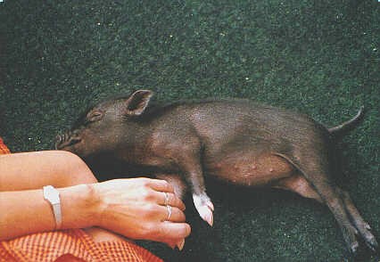 Lørdag 24. mai: Pappa tok meg med på jobben til mamma, der jeg fikk hilse på enda flere nye mennesker. Etterpå reiste vi til et stort hus med kjempemange mennesker og ting i.(Kjøpesenteret Metro) Jeg lå inni jakka til pappa, for der følte jeg meg trygg. Vi gikk rett til Zoo-butikken og kjøpte kattesele, reisedo og flexibånd. Mamma og pappa var veldig redd for at jeg skulle begynne å grynte inne i butikken. Men jeg lå stille som en mus. Det var ingen som så meg. Etterpå dro vi videre hjem til mormor og bestefar. Endelig skulle de få se meg, jeg ble jo nesten gal av all den telefonringingen. De hadde satt ut 3 små lekegriser på trappa for å ønske oss velkommen. Jeg fikk en rosa gris av mormor og bestefar som går, grynter og logrer med halen. Akkurat slik som jeg gjør, bortsett fra at den går på batteri og kan slåes av når som helst. Det går ikke med meg!! Jeg grynter når det passer meg og gjerne høye grynt for morro skyld når mamma og pappa har lagt seg. |