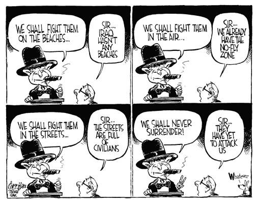 Funny ImagesOver time, I've collected a lot of pictures that were sent to me voa e-mail. Some people just love to bug others with junkmail. However, some of these pictures I thought were pretty funny; others were not. I'll leave my visitors to judge them all. I will upload more pictures in the feature and arrange them according to topic. At the moment I only have images that deal with Bush & Iraq. That is because these are the most recent ones I received. I have tons more that are about a variety of topics. BE PATIENT!