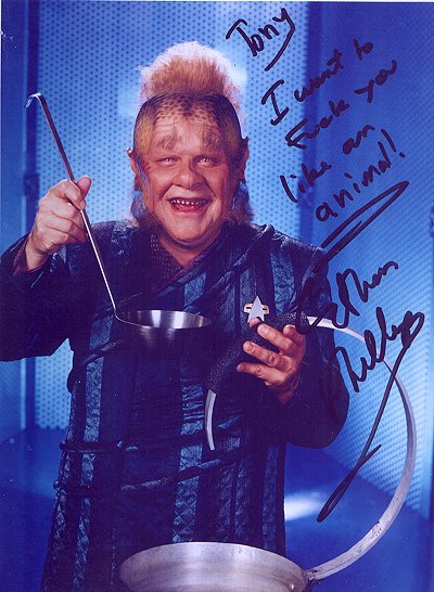 You won't find it at the link above (the page has since been removed), but the story behind this apparently was that "Tony" met this fellow (Ethan Phillips, star of Star Trek: Deep Space Nine, or Star Trek: Voyager, or Star Trek of Mayberry, or some other spin-off I can't think of) at a Nine Inch Nails concert, and Ethan was just quoting "Closer." Still, there are some image/caption combinations that just don't go together.