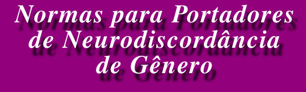 O propósito principal é a indentificação dos portadores de neurodiscordância de gênero, utilizando não apenas os procedimentos psicológicos e/ou psiquiátricos comuns, mas verdadeiros procedimentos médicos. Hoje nós sabemos que, os portadores de neurodiscordância de gênero são seres humanos com características inatas e somáticas próprias, e uma estrutura sexual mental e um sistema subcortical em discordância com a sua conformação genital original. Eles não são travestis, homosexuais ou pessoas com problemas psico-sociais, mas eles têm uma verdadeira identidade de gênero deles/delas, o gênero deles/delas, e uma identidade interna em discordância radical com os órgãos genitais deles/delas. Eles têm problemas somáticos, e precisam de uma solução médica, elas são pessoas portadoras de um defeito. Hoje nós sabemos, depois de Doner, Raisman e Field, Pfaff, Gorsky e muitos outros, que estudaram ratos; Bonsall, Michael, Pfaff, Pomerantz, Sholl, Ayoub, Goy, Resko, Connolly, Clark, entre outros, que estudaram os macacos rhesus; Doner, Swaab, LeVay, Pfaff, Gadue, McEwen que estudaram nos humanos, descobriram que o nosso Sistema Nervoso Central (SNC) tem anatomicamente um sexo, e esse sexo é neural e gravado em nosso corpo, sendo localizado em áreas subcorticais; e essas áreas nunca mudarão depois do nascimento. Ninguém aprende a ser um gato, ou a ser um cachorro. Ninguém aprende a ser um cisne ou um pato, todas as crianças sabem quem são. Ninguém aprende a ser um menino ou uma menina. Nosso sistema neural subcortical (hipotalamo, terminal de estria e amigdalas do limbico) gera em nosso ego, disposições inatas, ou dispositivos de imagem (Damasio), incluindo nossa pre-disposição de identidade de gênero. Aquela pre-disposição define em nosso ego, nossa identidade de gênero interna e real, nosso real e verdadeiro sexo. Biologicamente pessoas normais não têm nenhuma discordância entre a sua conformação genital e a sua pre-disposição de identidade de gênero ou sexo verdadeiro. Pessoas portadoras de neurodiscordância de gênero têm os órgãos genitais em discordância com a sua identidade de gênero, com o sexo inato gravado no corpo neural deles/delas. O propósito principal das Normas é mostrar um modo seguro de descobrir, o mais cedo possível, pessoas com desordens sexuais ou portadoras de disforia sexual, e se aquela disforia é de NEURODISCORDÂNCIA DE GÊNERO. Se alguém é um neurodiscordante de gênero, o mais cedo possível "ele" ou "ela" têm o direito, como ser humano (e um ser humano defeituoso), de ter o auxílio para realizar a correção necessária e possível, para obter, desta forma, o maior respeito, uma vida digna e normal dentro da sociedade. O neurodiscordante de gênero, neurobiologicamente um macho ou fêmea, tem o direito de ter o corpo corrigido o mais cedo possível, para ter e levar a vida o mais normal possível.