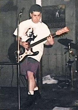 Me in my Jan Brady T-shirt with my trusty Mosrite guitar.
