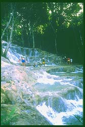 The Dunn's River cascades over a number of rock terraces on its way to the sea and a