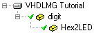 sample component instantiation of the Hex2LED module are added in the VHDL code.