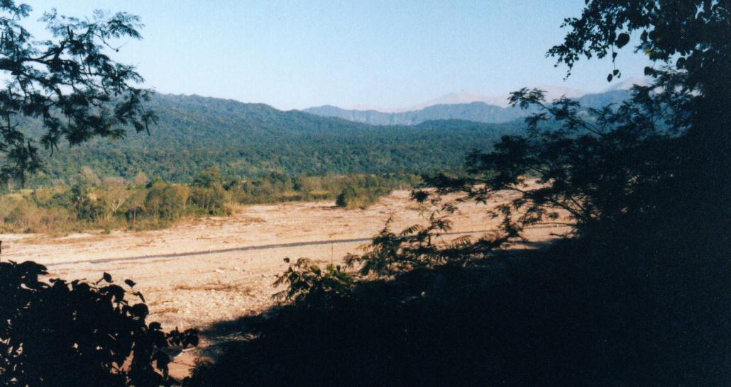 Recordaré siempre esa primera vista matinal, mirando hacia el sudoeste desde la barranca que daba sobre el ancho y pedregoso valle del San Lorenzo. El sol, que comenzaba ya a asomar sobre los cerros ubicados a mi espalda, pintaba las distantes colinas y montañas selváticas de verdes y dorados. La llegada de la luz diurna al valle creaba un gran contraste lumínico: más cerca estaba la fría oscuridad de las partes aún en sombra, y más lejos, la intensa y enceguecedora claridad donde daban los rayos directos. Al elevarse el sol, los sectores iluminados del valle se acercaban, desplazándose lentamente sobre las piedras multicolores. Daba la impresión que manos invisibles estaban retirando una gran colcha gris oscura, exponiendo ahora las piedras que quedaban tan intensamente iluminadas que se veían casi blancas, apenas tonalizadas de lilas y rosas.