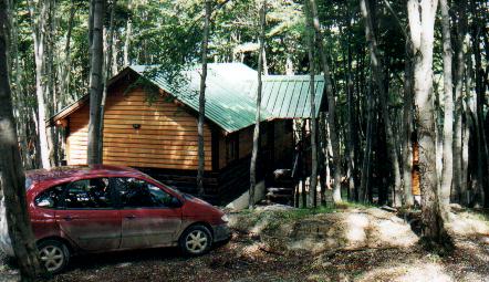 La casita era muy cómoda, y tenía todos los enseres, incluso una hermosa salamandra a gas en el centro del comedor/dormitorio. Calefaccionaba como ninguna para erradicar el frío exterior. Afuera, el bosque de lengas era una maravilla, cubriendo todo espacio disponible, a excepción del retorcido camino de circulación interno del complejo, y las casas mismas. Llegamos precisamente en la semana de maduración de los frutos de un hongo, el Llao-llao (Cyttaria hariotti), que vive prendido a troncos y ramas de las lengas. A causa de esto, todo el camino y todas las lomas arboladas estaban salpicadas de frutos esféricos del tamaño de una pelotita de ping-pong - y no más pesados tampoco - de color anaranjado pálido. Presentaban pequeñas hendiduras en toda la superficie, pareciéndose a cráteres lunares. Caían de los arboles a casi cualquier hora del día y de la noche, haciendo un sonoro golpe en el techo metálico de la casita. La maduración duró poco, puesto que cuando partimos, 4 días más tarde, era imposible encontrar uno para fotografiar.