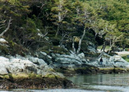Primero recorrimos el Río Pipo y luego bajamos hasta la hermosa Bahía Ensenada, donde junté caracoles. Aquí, parado en el muelle, un pichón de Remolinera Araucana voló hacia mí y se posó entre mis pies, donde no pude fotografiarlo.Luego fuimos hasta el Lago Roca, donde buscamos el campamento organizado - en forma condicional - por la Asociación Ornitológica del Plata. Seguramente me encontraría con muchos conocidos, amantes de las aves. Pero no encontramos nada, y concluimos acertadamente que la expedición había sido cancelada. Visitamos Lapataia, tomamos la foto del último mojón de la Ruta 3, y comenzamos la vuelta.