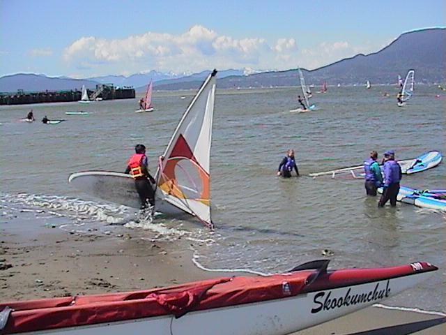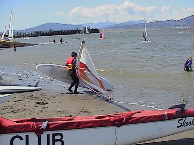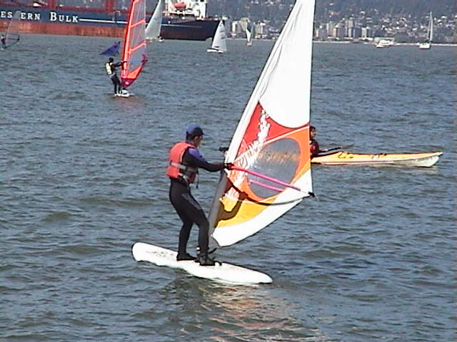 Windsure Windsurfing School is the only windsurfing rental service in Vancouver. It's in the sailing centre area and just a few steps away from the beach. You can rent the whole set of equipment, including wetsuit and life jacket, right on the beach. For beginner, take a lesson is essential and will make the learning process much faster. Check the lesson hours. Don't expect to walk in and take a lesson anytime. For me, learning windsurfing is much harder than snowboarding. The main reason is that you cannot stop after falling on the water. You have to struggle to get up. But after you improve your skill, you will hardly fall and you rest while windsurfing.