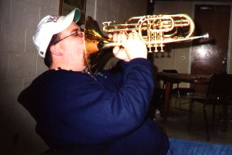 Your friendly neighborhood tubas, loading the truck for the Big Trip.